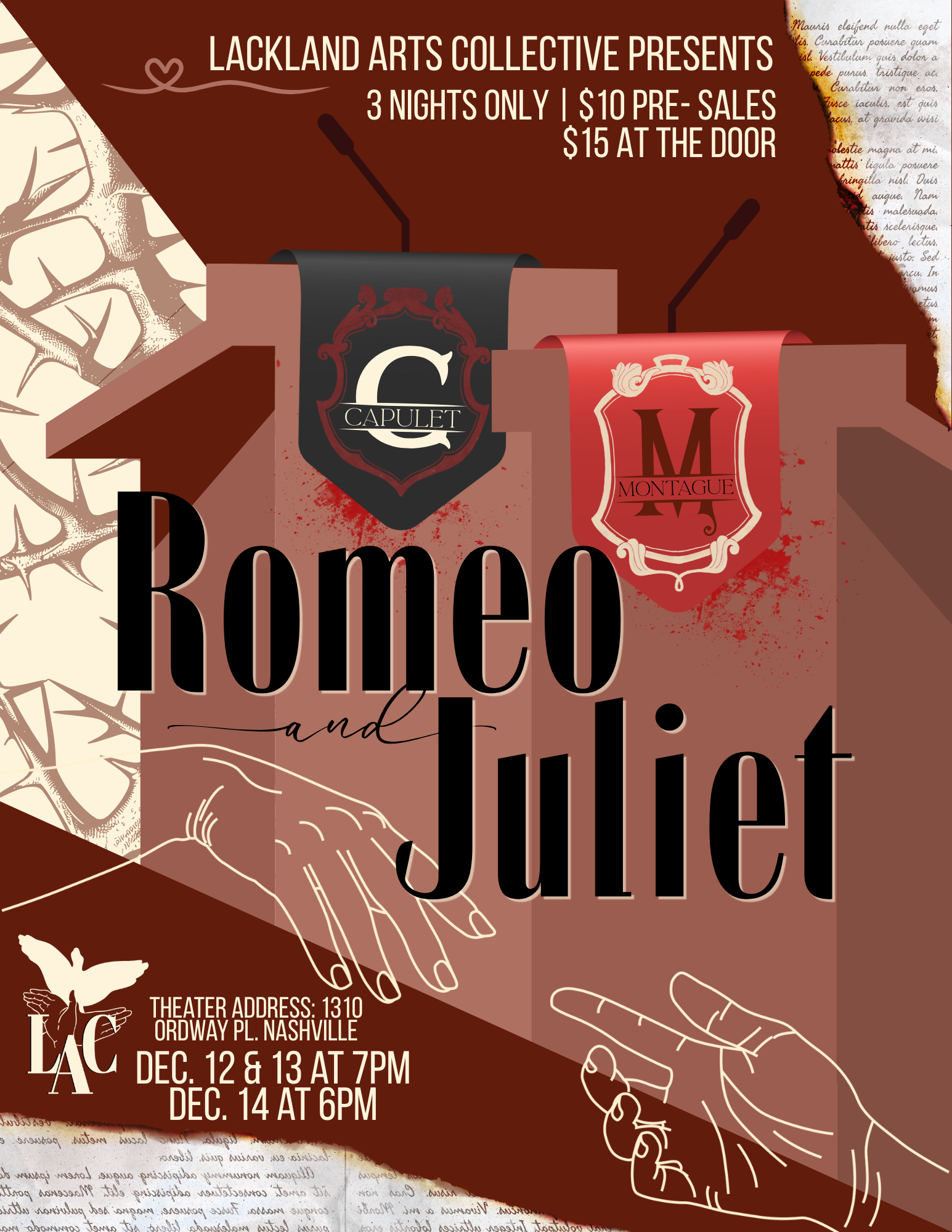 I will be playing Benvolio in Lackland Arts Collective’s production of Romeo and Juliet December 12-14!